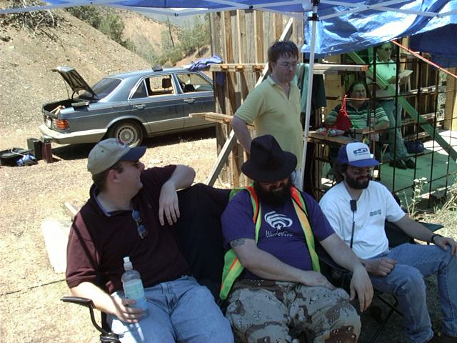 Relaxing under the canopy are visiting member Bob Davis, Gene Rominger and Ian Kluft, with Dan Solvin in the background (1/9)